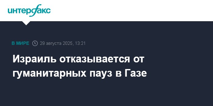 Москва. 29 августа. INTERFAX.RU - В Газк больше не будут применяться дневные гуманитарные паузы для доставки помощи населению, заявила Армия обороны Израиля (ЦАХАЛ).