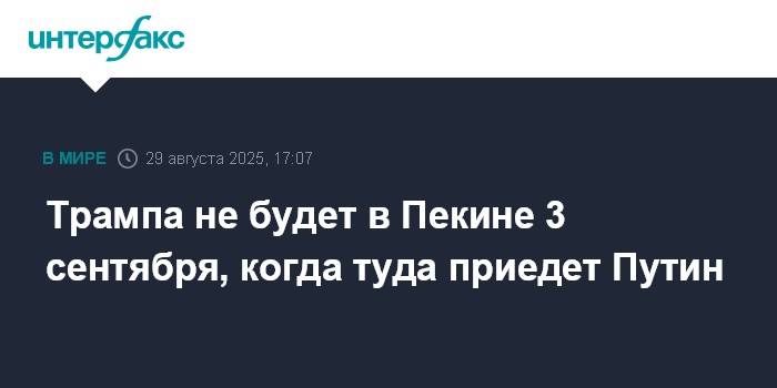 Трампа не будет в Пекине 3 сентября, когда туда приедет Путин