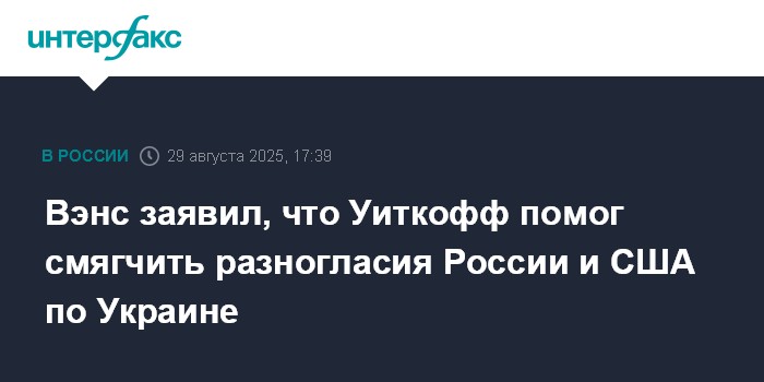 Вэнс заявил, что Уиткофф помог смягчить разногласия России и США по Украине