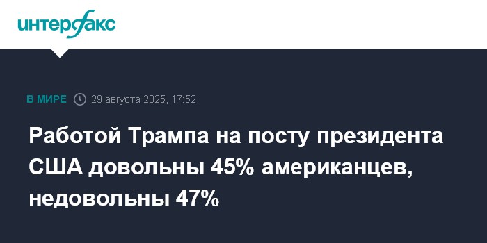 Работой Трампа на посту президента США довольны 45% американцев, недовольны 47%