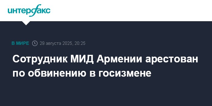 Москва. 29 августа. INTERFAX.RU - Следственный комитет Армении сообщил об аресте сотрудника МИД республики по обвинению в государственной измене.