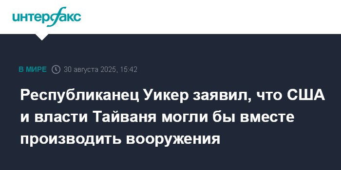 Республиканец Уикер заявил, что США и власти Тайваня могли бы вместе производить вооружения