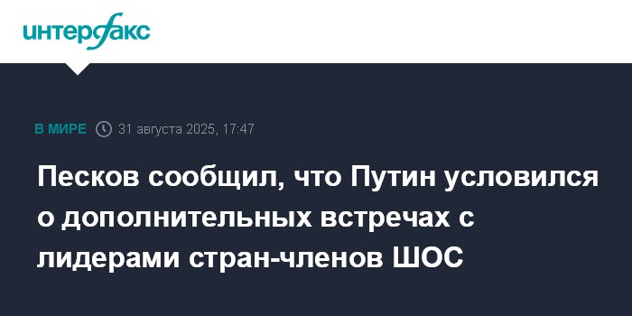 Песков сообщил, что Путин условился о дополнительных встречах с лидерами стран-членов ШОС