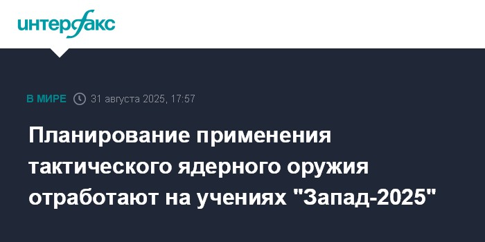 Москва. 31 августа. INTERFAX.RU - На учениях "Запад-2025" будет отрабатываться планирование применения тактического ядерного оружия, сообщил в воскресенье начальник Генштаба Вооруженных сил - первый заместитель министра обороны Белоруссии генерал-майор Павел Муравейко.