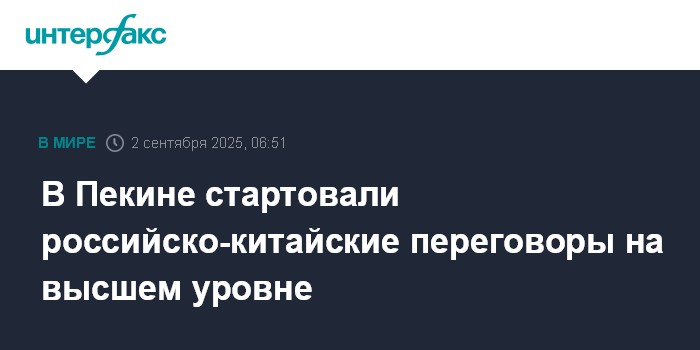 Москва. 2 сентября. INTERFAX.RU - Российско-китайские переговоры на высшем уровне начались в Пекине в рамках официального визита президента РФ Владимира Путина в Китай.
