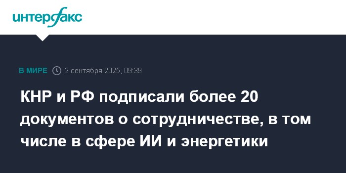 КНР и РФ подписали более 20 документов о сотрудничестве, в том числе в сфере ИИ и энергетики