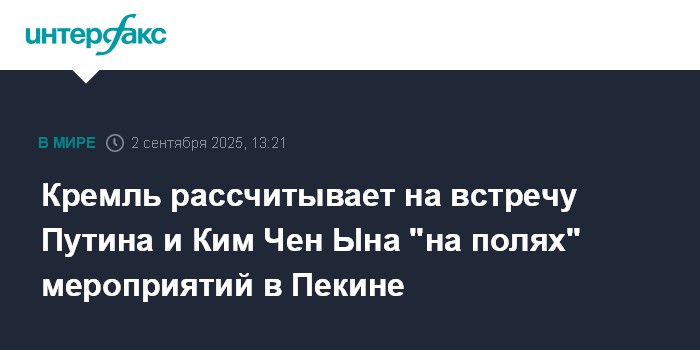Москва. 2 сентября. INTERFAX.RU - В Кремле рассчитывают, что президент РФ Владимир Путин встретится с лидером КНДР Ким Чен Ыном "на полях" мероприятий в Пекине, соответствующее приглашение передано.
