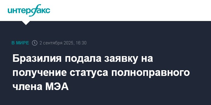 Москва. 2 сентября. INTERFAX.RU - Бразилия подала заявку на получение статуса полноправного члена Международного энергетического агентства (МЭА), говорится в сообщении организации.