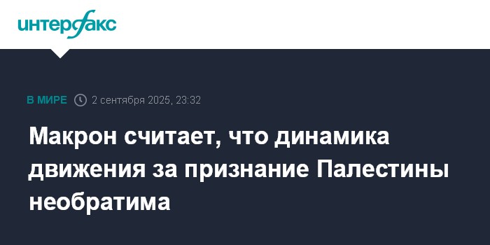 Москва. 2 сентября. INTERFAX.RU - Президент Франции Эммануэль Макрон предостерег Израиль от любых наступательных действий или попыток аннексии территории, заявляя, что это не сможет остановить движение за признание палестинского государства.