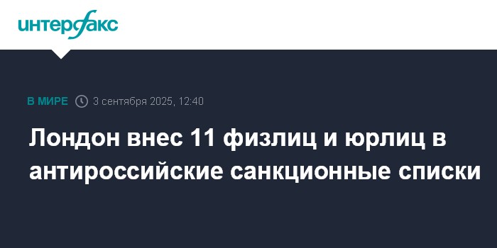 Москва. 3 сентября. INTERFAX.RU - Власти Великобритании добавили три российские организации в санкционные списки, сообщается в среду на сайте британского правительства.