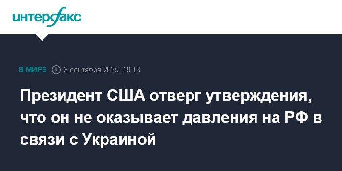 Москва. 3 сентября. INTERFAX.RU - Президент США Дональд Трампа в среду отверг предположения, что он не предпринимает действий в отношении России в связи с ситуацией на Украине.