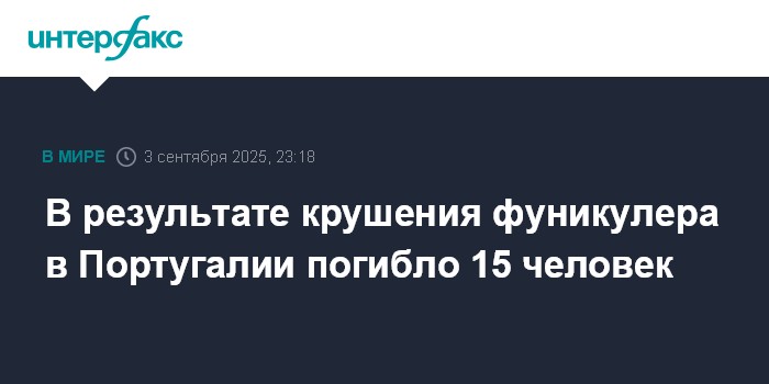 Москва. 3 сентября. INTERFAX.RU - Фуникулер "Глория", который является достопримечательностью Лиссабона и традиционно привлекает многих туристов, сошел с рельсов в среду, в результате чего погибли 15 человек и еще 18 получили ранения, сообщает Associated Press со ссылкой на экстренные службы.