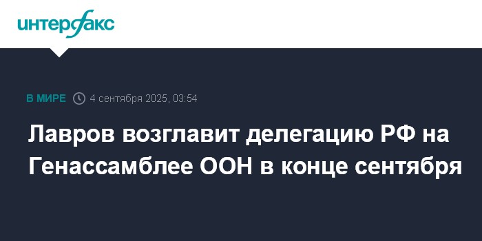 "9 сентября открывается 80-я сессия Генассамблеи ООН. Российскую делегацию на неделе высокого уровня - а она состоится с 23 по 29 сентября - возглавит министр иностранных дел России Сергей Лавров", - сообщила Захарова в ходе брифинга на полях Восточного экономического форума (ВЭФ).