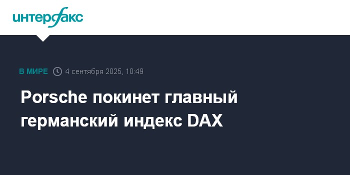 Москва. 4 сентября. INTERFAX.RU - Акции Porsche AG, выпускающей спортивные автомобили, будут исключены из расчета главного германского индекса DAX, в который входят 40 крупнейших по капитализации компаний Германии.
