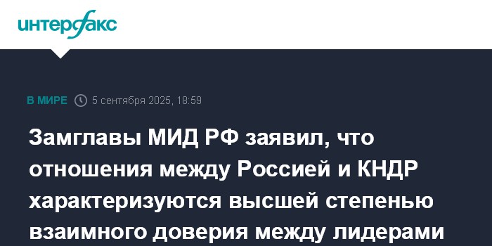 Замглавы МИД РФ заявил, что отношения между Россией и КНДР характеризуются высшей степенью взаимного доверия между лидерами стран