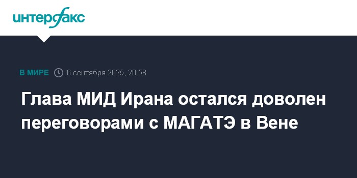 Москва. 6 сентября. INTERFAX.RU - Встреча иранской делегации и представителей МАГАТЭ в Вене прошла хорошо, заявил глава МИД Ирана Аббас Аракчи, которого цитирует агентство "Мехр".