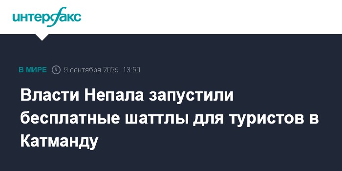 Москва. 9 сентября. INTERFAX.RU - Власти Непала приняли решение запустить бесплатные шаттлы для иностранных туристов от аэропорта до основных отелей Катманду и обратно на фоне массовых протестов в столице, сообщает посольство России в Непале.