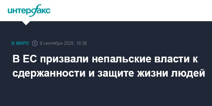 Москва. 9 сентября. INTERFAX.RU - ЕС глубоко сожалеет о гибели людей и насилии в ходе продолжающихся демонстраций в Непале, заявил во вторник официальный представитель Европейской внешнеполитической службы (ЕВС).