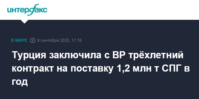 Турция заключила с BP трёхлетний контракт на поставку 1,2 млн т СПГ в год
