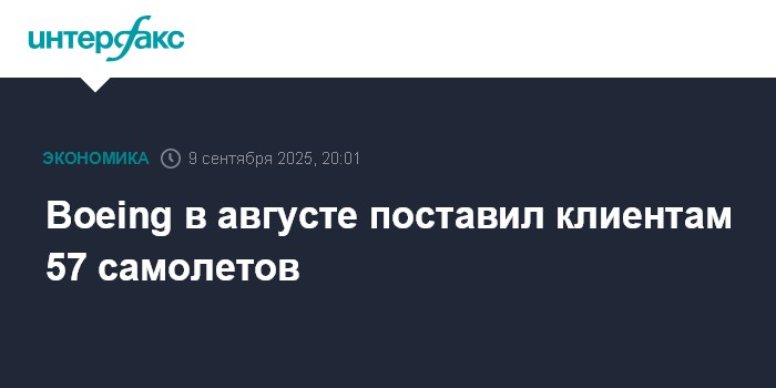Москва. 9 сентября. INTERFAX.RU - Американский аэрокосмический концерн Boeing Co. в августе поставил клиентам 57 коммерческих самолетов, что стало максимумом для этого месяца с 2018 года.