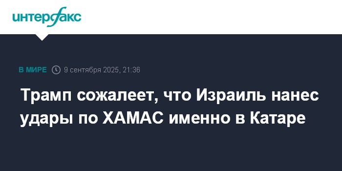 Трамп сожалеет, что Израиль нанес удары по ХАМАС именно в Катаре