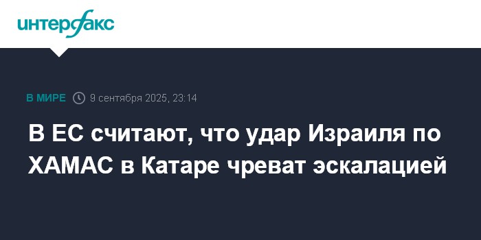 "Сегодняшний авиаудар Израиля по лидерам ХАМАС в Дохе нарушает международное право и территориальную целостность Катара и грозит дальнейшей эскалацией насилия в регионе", - говорится в заявлении официального представителя Европейской внешнеполитической службы (ЕВС).