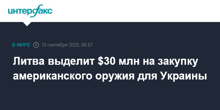 Москва. 10 сентября. INTERFAX.RU - Литва выделит $30 млн на инициативу НАТО и США по поддержке Украины PURL ("Список приоритетных потребностей Украины"), сообщила пресс-служба литовского Минобороны.