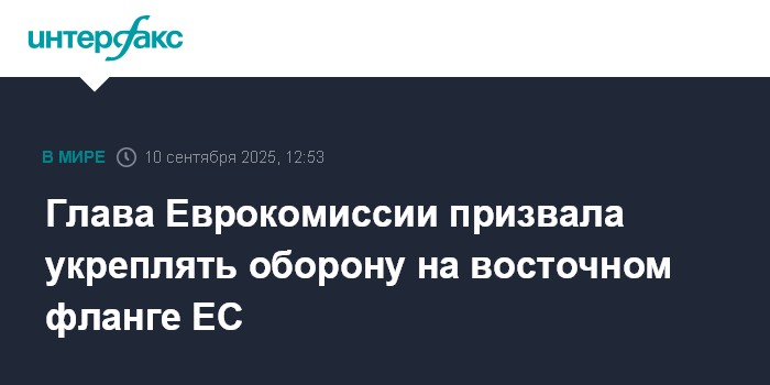Москва. 10 сентября. INTERFAX.RU - Председатель Еврокомиссии Урсула фон дер Ляйен призвала инвестировать в оборонный потенциал восточного фланга Евросоюза. Она заявила об этом в Европарламенте, представляя ежегодный доклад о состоянии Евросоюза.