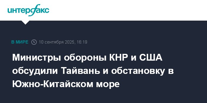Москва. 10 сентября. INTERFAX.RU - Министр обороны Китая Дун Цзюнь и шеф Пентагона Пит Хегсет в режиме видеозвонка обсудили Тайвань и ситуацию в Южно-Китайском море, сообщает South China Morning Post со ссылкой на "Синьхуа"