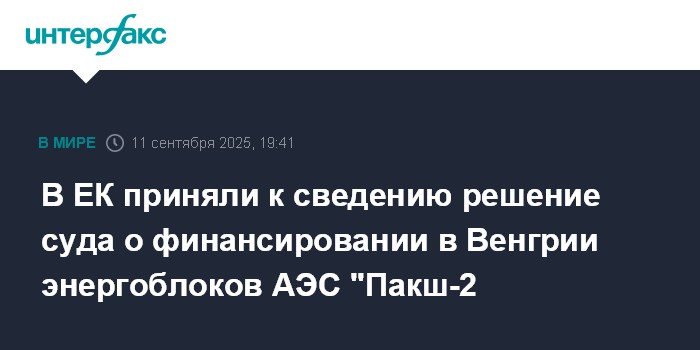 11 сентября стало известно, что постановление суда ЕС отменяет прежнее согласование Еврокомиссией финподдержки проекта Венгрией от 2017 года. Согласно материалам суда, основное финансирование проекта должно прийтись на российский кредит в размере до 10 млрд евро. При этом еще 2,5 млрд евро предполагалось профинансировать из венгерского бюджета.