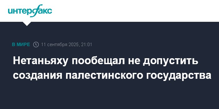 Москва. 11 сентября. INTERFAX.RU - Премьер-министр Израиля Биньямин Нетаньяху заявил, что выполнит обещание не допустить того, чтобы в мире было палестинское государство. Как пишет The Times of Israe, он сказал это в ходе поездки на Западный берег Иордана.