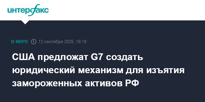 Москва. 12 сентября. INTERFAX.RU - США планируют предложить партнерам по G7 создать юридический механизм, который, как предполагается, позволит изымать и использовать замороженные активы РФ для поддержки Украины, сообщает в пятницу Bloomberg.