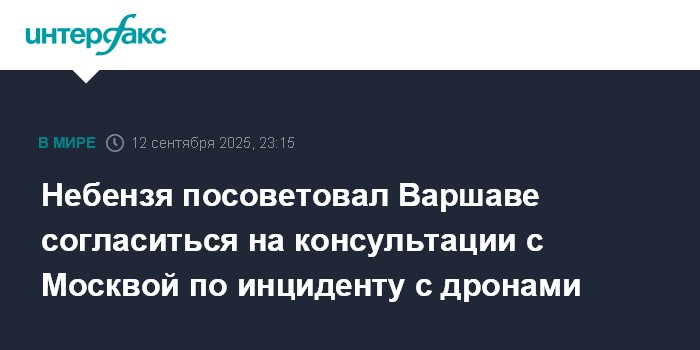 Небензя посоветовал Варшаве согласиться на консультации с Москвой по инциденту с дронами