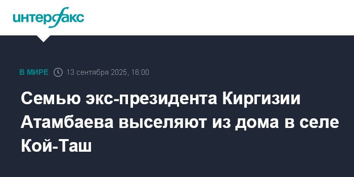 Москва. 13 сентября. INTERFAX.RU - Семью экс-президента Киргизии Алмазбека Атамбаева принудительно выселяют из дома в селе Кой-Таш, который перешел в государственную собственность.