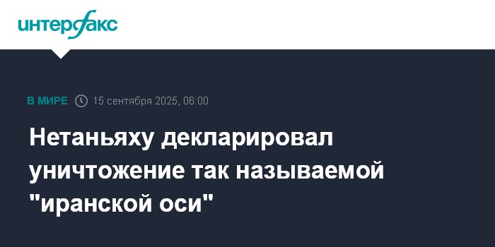 Москва. 15 сентября. INTERFAX.RU - Премьер-министр Израиля Биньямин Нетаньяху считает, что его действия практически привели к уничтожению так называемой "иранской оси".