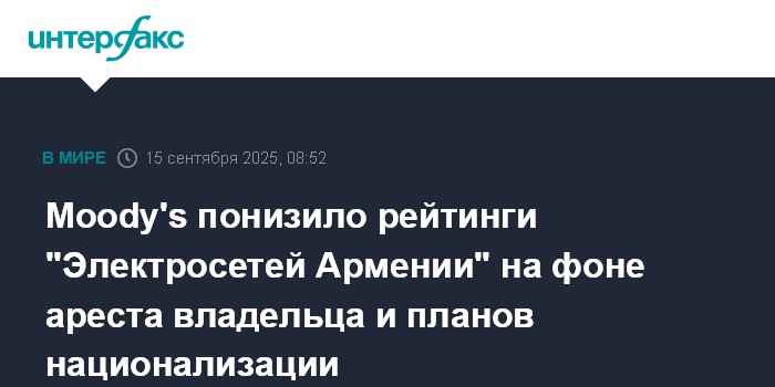 Moody's понизило рейтинги "Электросетей Армении" на фоне ареста владельца и планов национализации