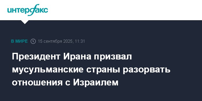 Москва. 15 сентября. INTERFAX.RU - Мусульманским странам следует проявить единство на фоне действий Израиля, заявил агентству Mehr президент Ирана Масуд Пезешкиан перед поездкой на саммит лидеров арабских и исламских стран в Катаре.