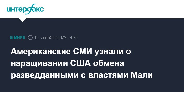 Москва. 15 сентября. INTERFAX.RU - Вашингтон за последние месяцы увеличил обмен разведывательными данными с переходным правительством Мали, сообщает The Washington Post со ссылкой на источники.
