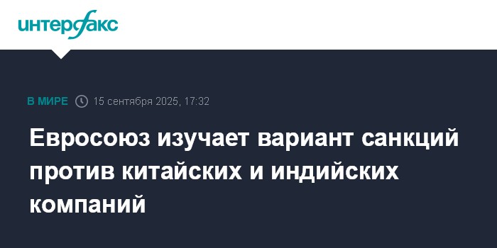 Евросоюз изучает вариант санкций против китайских и индийских компаний