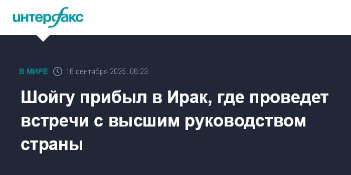 Москва. 16 сентября. INTERFAX.RU - Секретарь Совета безопасности РФ Сергей Шойгу прибыл в Багдад с рабочей поездкой, в ходе которой проведет встречи с высшим политическим и военным руководством Ирака.