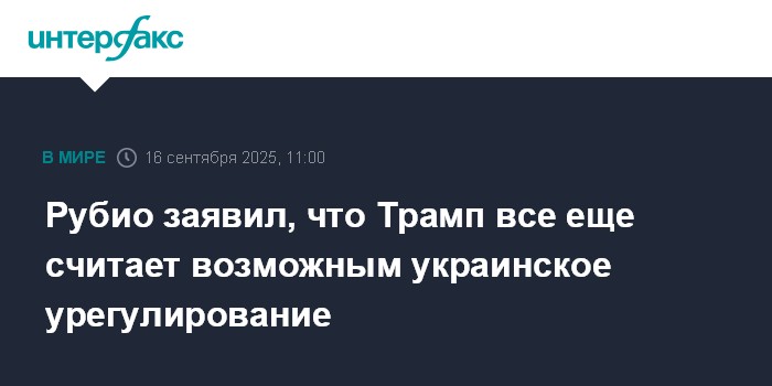 Москва. 16 сентября. INTERFAX.RU - Президент США Дональд Трамп все еще верит в достижение мира на Украине и продолжит усилия для решения этой проблемы, заявил во вторник госсекретарь США Марко Рубио.
