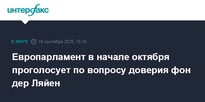 Европарламент в начале октября проголосует по вопросу доверия фон дер Ляйен
