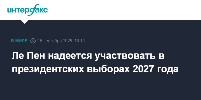 Москва. 16 сентября. INTERFAX.RU - Глава парламентской фракции ультраправой французской партии "Национальное объединение" Марин Ле Пен сохраняет веру в то, что сможет участвовать в президентских выборах в 2027 году, сообщает BFMTV.
