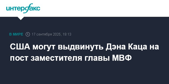 Москва. 17 сентября. INTERFAX.RU - Администрация президента США Дональда Трампа может выдвинуть Дэна Каца на пост первого заместителя директора-распорядителя Международного валютного фонда (МВФ), пишет The New York Post со ссылкой на несколько источников.