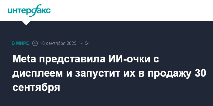 Meta представила ИИ-очки с дисплеем и запустит их в продажу 30 сентября