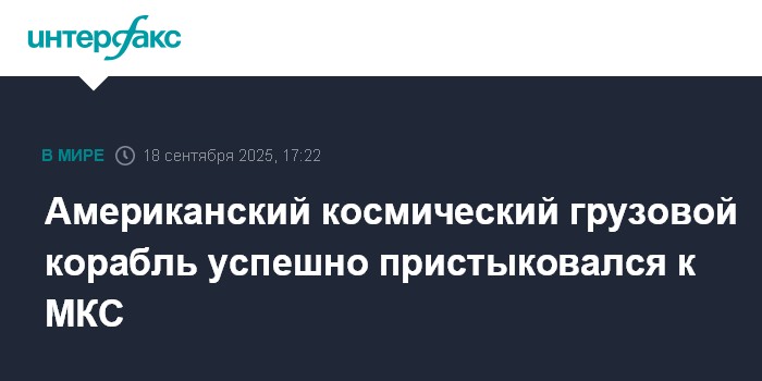 Москва. 18 сентября. INTERFAX.RU - Американский грузовой космический корабль Cygnus корпорации Northrop Grumman в четверг успешно состыковался с Международной космической станцией (МКС), сообщило NASA.