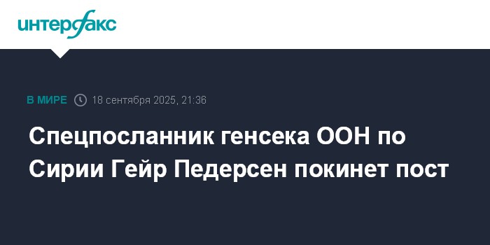 Ранее пресс-секретарь ООН Стефан Дюжаррик на пресс-конференции в Нью-Йорке также подтвердил, что Педерсен покидает пост. Однако конкретная дата, когда он прекратит выполнять обязанности, еще не определена, отметил Дюжаррик.