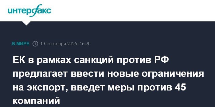 ЕК в рамках санкций против РФ предлагает ввести новые ограничения на экспорт, введет меры против 45 компаний
