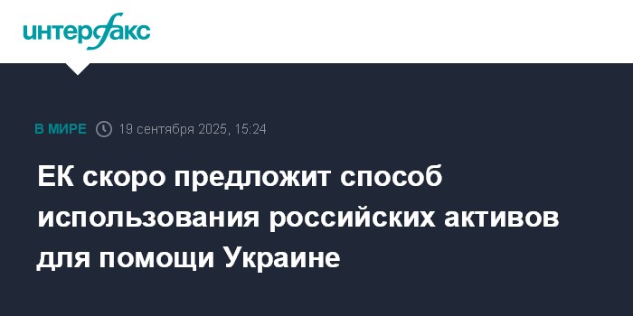 Москва. 19 сентября. INTERFAX.RU - В Еврокомиссии продолжают прорабатывать предложения, которые позволят использовать замороженные российские активы для помощи Украине, заявила в видеообращении председатель ЕК Урсула фон дер Ляйен.