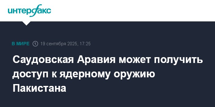 Москва. 19 сентября. INTERFAX.RU - Министр обороны Пакистана Хаваджа Мухаммад Асиф заявил, что по оборонному соглашению Исламабада с Саудовской Аравией королевству может быть открыт доступ к пакистанскому ядерному оружию, передает "Аль-Арабийя".
